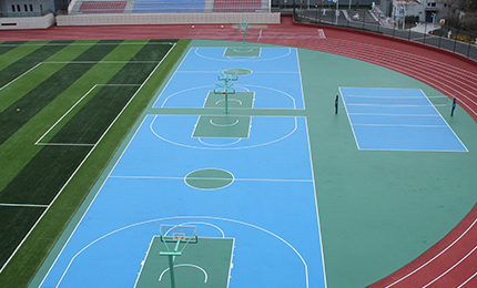 • 北京一六一中学体育场 全塑型塑胶跑道型